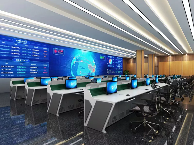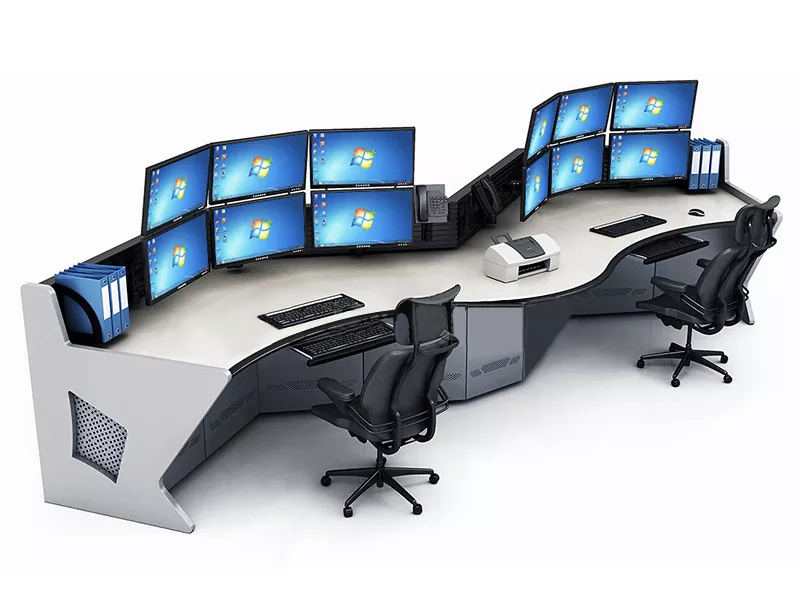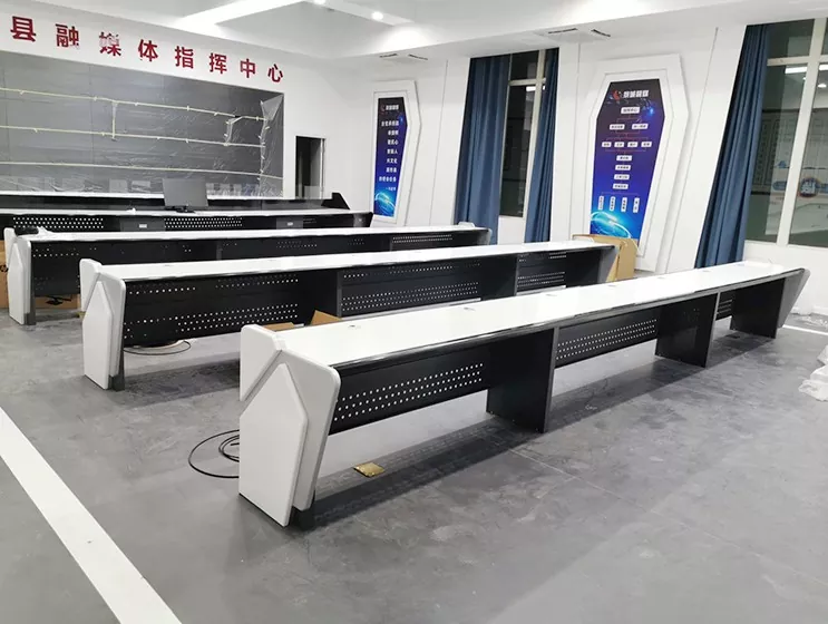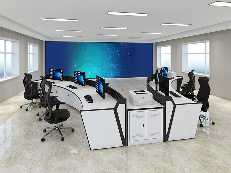 2.Structură și dimensiune: Selectați modele drepte, în formă de L, în formă de U sau personalizate pe baza spațiului centrului de comandă și a nevoilor operaționale, lăsând suficient spațiu pentru echipamente și personal.