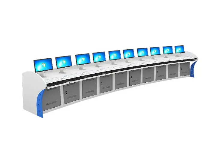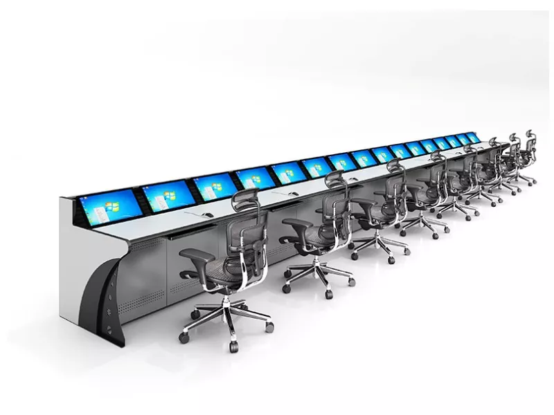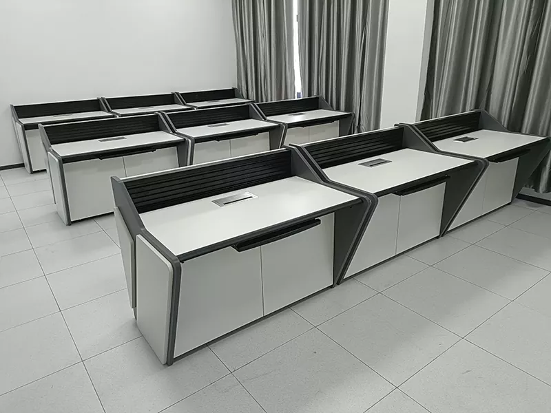 Consola de monitorizare modulară integrează canale de cabluri ascunse și canale de cablare organizate pentru a reduce dezordinea și a simplifica întreținerea. Înălțimea de lucru reglabilă și suprafețele de birou rezistente la uzură îmbunătățesc confortul operatorului în timpul schimburilor lungi.